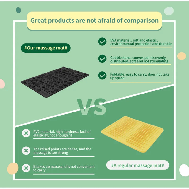 Step into relaxation with the Durable Reflexology Foot Massage Pad, designed to stimulate key pressure points on your feet, providing relief from stress and improving overall circulation. This portable foot massage pad offers the benefits of reflexology in the comfort of your home. With durable materials that ensure long-lasting use, the textured surface targets areas that alleviate tension and promote relaxation. Ideal for daily use, it helps reduce foot pain, enhance flexibility, and improve your overall well-being.