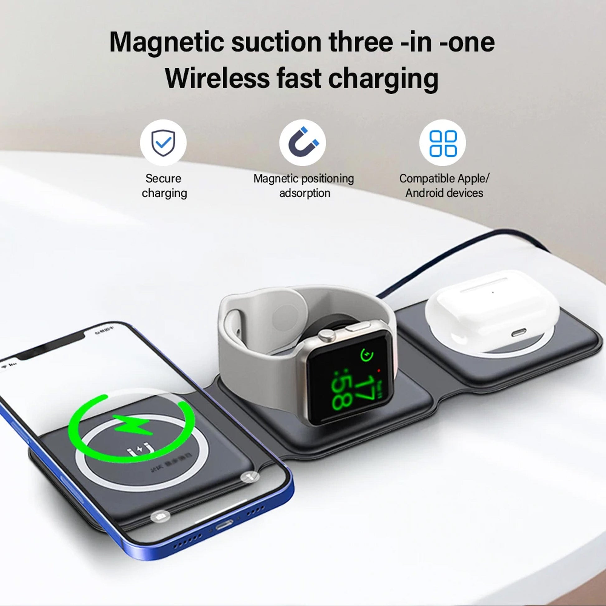 2. Magnetic Attachment for Secure Charging: The magnetic feature ensures a secure connection between the charger and your device. No more worrying about misalignment or devices slipping off the mat. Experience reliable and hassle-free charging.